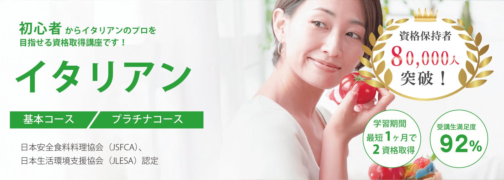イタリアンの卒業・修了証明バナー、資格証明バナーを無料で使用できます!