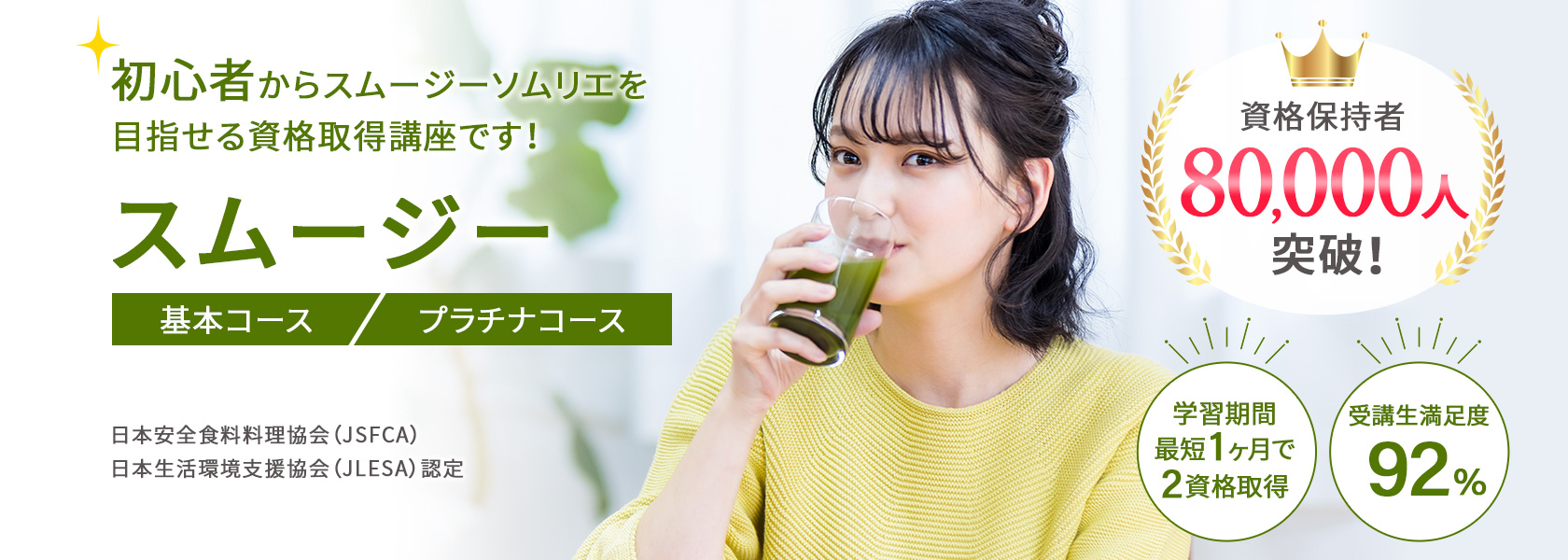 健康や美容に関心のある方に人気なのが、スムージー資格です。スムージー資格を取得することで、果物や野菜、スーパーフードを使った栄養バランスの良いレシピ作りを学べるだけでなく、ダイエットや美肌、免疫力アップなど目的に応じたスムージーの知識も身につきます。 また、スムージー資格は家庭での実践に役立つだけでなく、カフェや飲食店のメニュー開発、さらには講師活動や副業としても活用できる点が魅力です。健康的なライフスタイルを実現したい方におすすめの資格といえるでしょう。