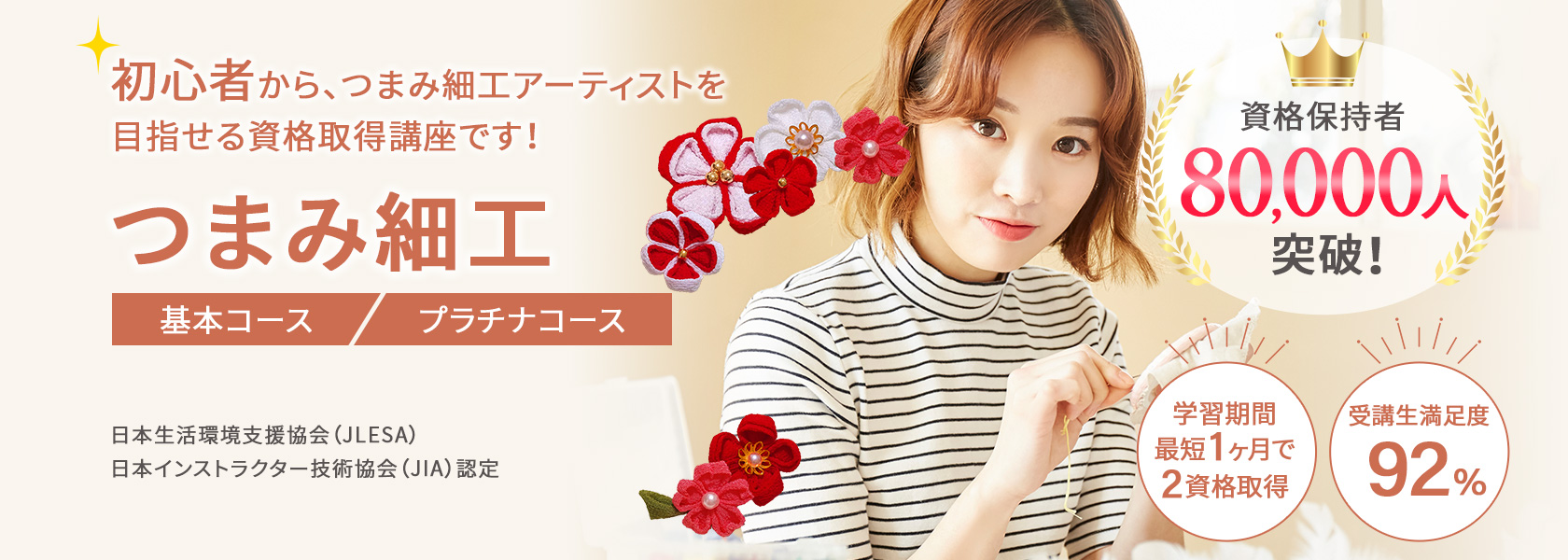 日本の伝統工芸の一つであるつまみ細工は、ちりめん布などを折りたたんで花や模様を作り、髪飾りやアクセサリー、小物に仕上げる技法です。その技術を体系的に学び、スキルを証明できるのがつまみ細工資格です。 資格取得の講座では、基本的な布の折り方から、花びらや立体モチーフの作り方、作品に仕上げるための組み合わせや接着の方法まで学べます。伝統的な和装用のかんざしから、現代的なアクセサリーやインテリア小物への応用まで幅広く対応できるのが魅力です。 また、忙しい方や自宅で学びたい方には、オンラインで学べるつまみ細工資格通信講座がおすすめです。教材や動画を通して自分のペースで学習でき、初心者でも安心して技術を身につけられます。資格取得後は、ハンドメイド作家として販売活動を行ったり、教室やワークショップを開催して講師として活躍する道も開けます。 和の伝統文化に触れながら、現代的なクラフトとして楽しめるつまみ細工資格は、趣味を深めたい方から副業や起業を考える方まで幅広く人気のある資格です。