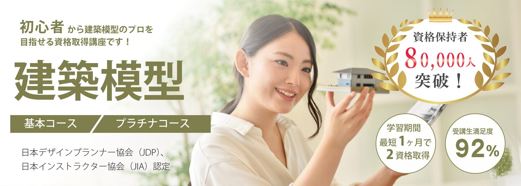 はじめて建築模型を学ぶ方でも、ムリなく学べるオリジナル教材!プロが監修した教材と充実のカリキュラムで建築模型資格講座の平均合格率は、80%以上(23年11月時点、自社調べ)です。(プラチナコース卒業生は資格取得100%)