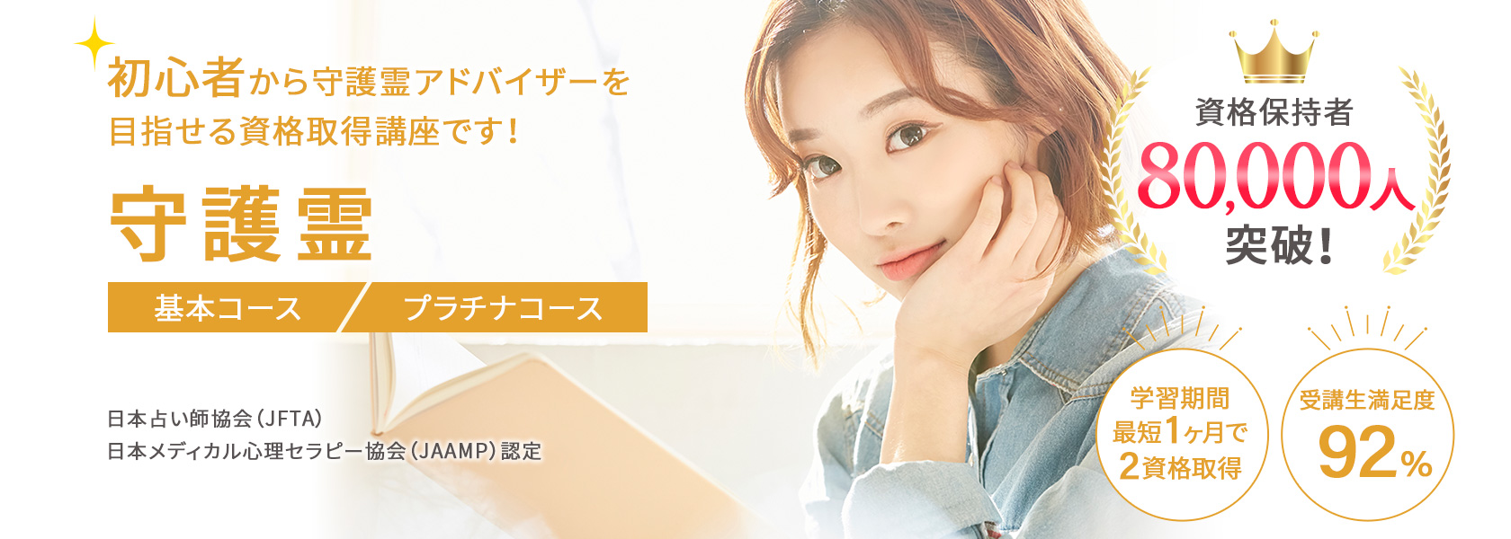 はじめて守護霊を学ぶ方でも、ムリなく学べるオリジナル教材!プロが監修した教材と充実のカリキュラムで守護霊資格講座の平均合格率は、80%以上(23年11月時点、自社調べ)です。(プラチナコース卒業生は資格取得100%)